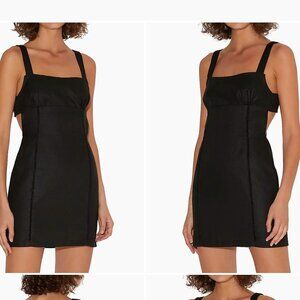 The Flick minidress from Hansen + Gretel features a fitted, squareneck silhouette crafted of pure linen. An open back with a tie detail elevates the look.