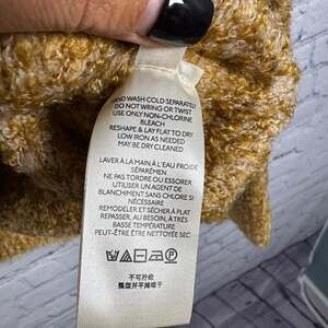 Free People Moira Wool-Blend Slouchy Tunic Sweater in Honeycomb, women's size XS. This cozy and stylish sweater features a boat neck and a relaxed, oversized fit, making it perfect for comfortable everyday wear. The honey-colored wool-blend knit offers warmth and a unique textured look.
