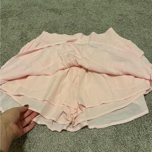 This charming pink ruffled skort is perfect for any occasion. Its soft fabric and elegant design make it a must-have in your wardrobe. Build in shorts