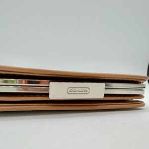 Sleek white leather wallet with brown edges. Classic Coach design.