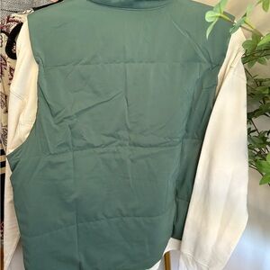 Sage green puffer vest. Ideal for layering. Stylish and warm.