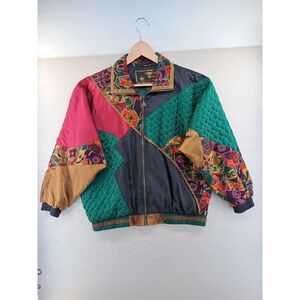 Vtg Windbreaker Womens Medium Abstract Colorful Track Jacket 80s 90s Parachute