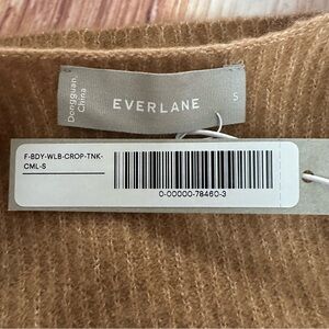Everlane The Cozy Stretch Cropped Tank Top in the color camel. made from a blend of wool, recycled nylon, yak hair, and elastane. Approx 12” pit to pit and 13” in length.