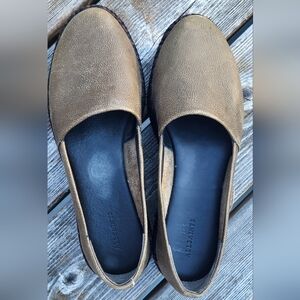 The Beige/almost olive green leather upper with a Dark Brown & black platform makes for a unique and trendy look that can be paired with any outfit.