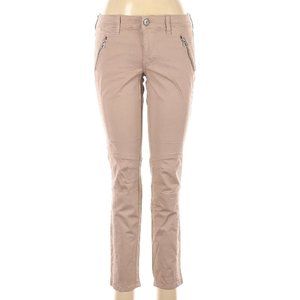 EUC. 54% Cotton, 43% Rayon, 3% Spandex. Tan, low rise waist. Two front pockets with zippers. Two back pockets. Size 0. Inseam: 26 inches. Waist: 26 inches.