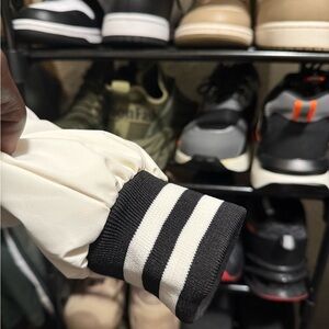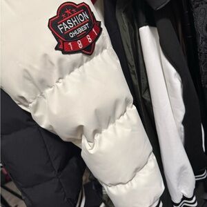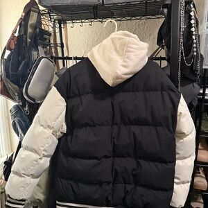 Stay stylish and warm with this black and white hooded jacket. Perfect for any casual outing. Brand new without tags never worn.