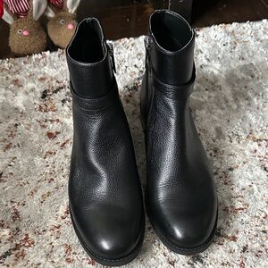 Step out in style with these sleek black leather ankle boots. Perfect for any occasion, they offer both comfort and elegance.