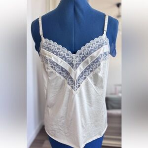 Vintage 70's Vanity Fair Beige Chevron Lace Cami Camisole Slip Top Size 36 *FLAW