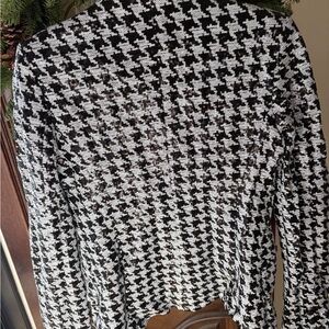 Elegant sequin jacket with black and white pattern. Adds sparkle to any outfit.