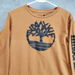 Timberland Long Sleeve T Shirt Boys XL Logo Graphic Print Tan