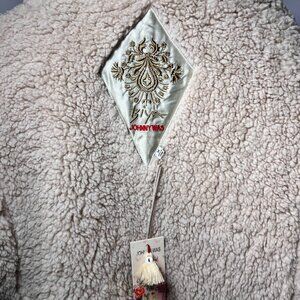 NWT JOHNNY WAS Peony Jacquard Coat with Sherpa Trim and Pomp-pomp Tassels M *Same Coat but USED $199 here @ Posh*