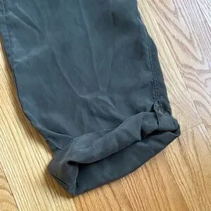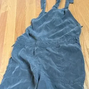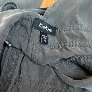 Bebe Army Green Bib Side Zip Utility Carpenter Overall Silk Jumper Jumpsuit Size XS in excellent condition! Soft, flowy 100% silk fabric, leg tabs to roll up or leave down, wide leg, side zippers, front & back pockets & adjustable straps.