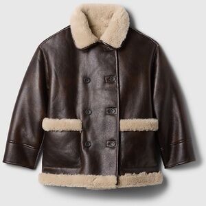 GAP REVERSIBLE RECYCLED VEGAN LEATHER SHERPA JACKET IN BEIGE/BROWN - M