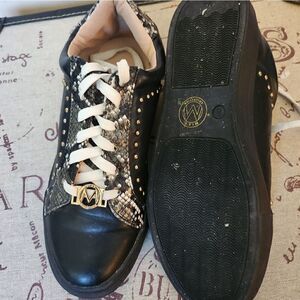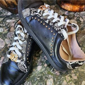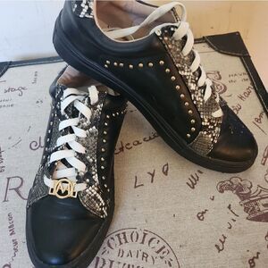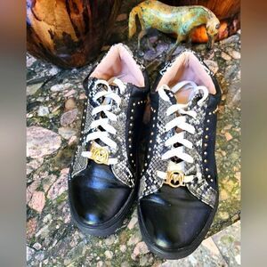 Mia K Collection sophisticated black comfortable sneakers with unique animal print and stud design. Clean worn only twice. had original insoles. in very condition. Wears great with leggings, jeans. or shorts.