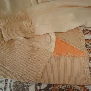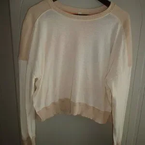 NWOT fp movement Boxy Cropped Top XS Raglan Long Sleeves Geo Design Natural Mult