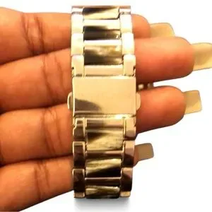 Michael Kors Tribeca Chronograph Zebra Watch (MK-5595) featuring a bold silver-tone case, zebra acetate inlay links, and a multi-function chronograph dial. A rare standout accessory that blends modern polish with eye-catching design — perfect for gifting.