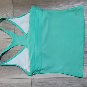 Vibrant aqua tank with Adidas logo. Double strap design. Ideal for workouts.