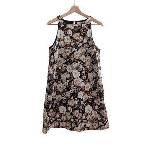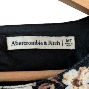 Women's size Medium Tall MT Abercrombie & Fitch sleeveless shift dress. Linen and cotton fabric blend with an all-over black, tan, and cream floral print. Muscle style tank top with high neckline. Shift dress silhouette with a mini length skirt. Other details include keyhole back with fabric covered button and two side seam pockets. See photos for condition. There is some pilling and fading due to normal wash and wear, but no stains or holes noted. Reasonable offers always welcome!
