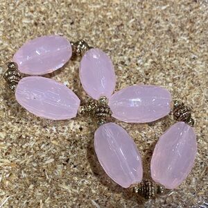This elegant stretch bracelet features beautiful pink beads complemented by gold accents. Perfect for adding a touch of sophistication to any outfit. Vintage item never worn