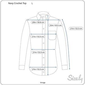 This vintage navy blue shirt is crafted with a touch of elegance, accentuated by intricate lace detailing along the button placket. The burgundy buttons add a subtle contrast, making it a sophisticated choice for formal or casual settings. Ideal for enhancing professional attire with a unique touch.
