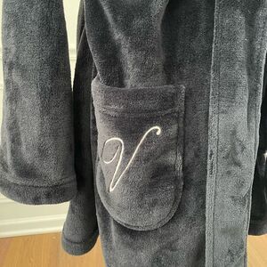 Victoria’s Secret Plush Black Monogram V Short Robe XS