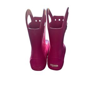 Crocs girls rainboots sz 2 pink pull on w/handles rubber boots youth