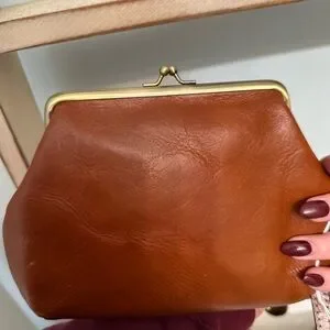 Chic Patricia Nash clutch in rich tan leather. Sleek design with wristlet strap. Ideal for stylish outings. Great condition. Comes with tag
