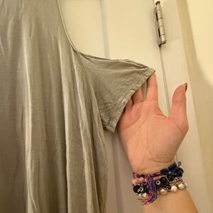 Gently worn twice. Soft, lightweight fabric with cold-shoulder sleeve detail and a relaxed, flowy fit. Wrinkled from being stored folded but in great condition overall.