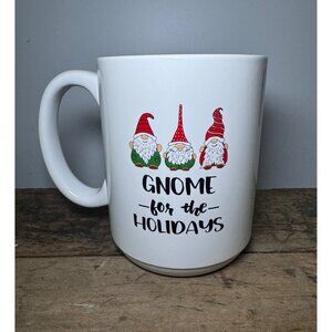 VERY oversized white coffee mug with three (3) gnomes on both sides as well as the saying "Gnome for the Holidays". This mug is about 50 ounces or more! Measures approximately 7" tall and 5.5" wide - a typical mug is about 3.5" tall and 3" wide. Use as a mixing bowl! Great as a flower vase or planter! Fill with gnome gifts! The possibilities are endless! Has one tiny chip near the bottom of the mug as noted in photo.