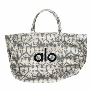 Alo Yoga® Iconic Shopper Tote Bag is a large, durable canvas tote bag featuring a tie-dye pattern, corded handles, and the Alo Yoga® logo.
