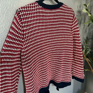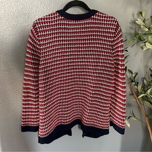 Talbots Red, White, And Navy Knit Cardigan Sweater