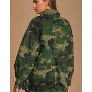 NEW FREE PEOPLE Seize The Day Green Camo Print Utility Jacket Size XS