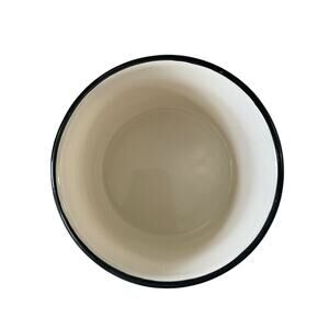 Hand Painted Striped Ceramic Canister w/ Wood Lid Made in India Black & Cream