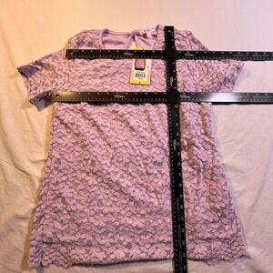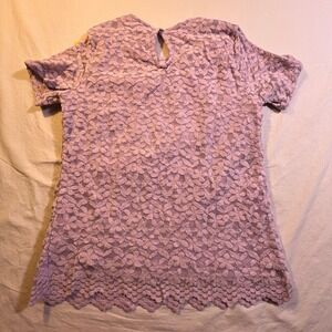 TEDDI ROSE Purple Lace Overlay Short Sleeve Tunic Top Blouse Size S