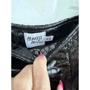 Princess Polly Black Shiny Faux Leather Snake Skin Mini Skirt Size XS