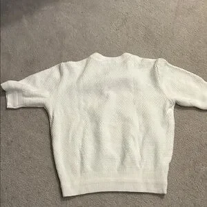 Chic textured knit. Short sleeves. Classic crew neck.