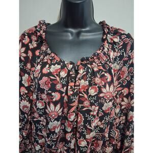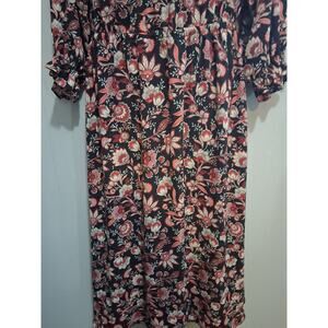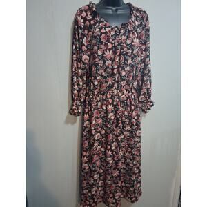 Talbots Dress Medium Long Floral Cottagecore Ruffled Neck & Sleeve Garden Party