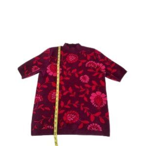Elegant, abstract floral design on an elbow-sleeve jacquard sweater from Ann Taylor. Sweater has rich shades of burgundy, plum, and pink, and features a flattering mock neck style. Note some minor pilling throughout.