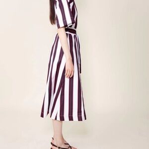 A midi dress so versatile, your options for wearing it are endless. Introducing the Juliet Short Sleeve Midi Dress by Du Paradis, a stunning piece featuring a stylish A-line silhouette. This dress boasts short sleeves and is crafted from 100% cotton, making it both comfortable and chic. Decorated with black and red stripes, it offers a playful yet sophisticated look perfect for any fall occasion. Designed for a unique flair, this crewneck dress is a must-have addition to your workwear wardrobe.