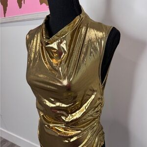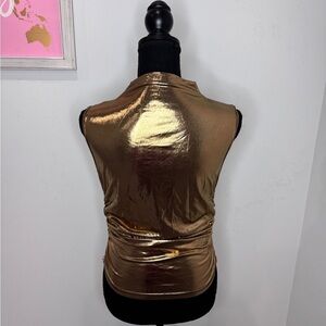 Gold Shiny Sleeveless Party Cinched Sides Women's Top (M)