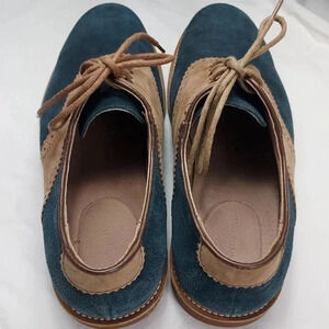 Land's End Mens Tan Leather and Blue Suede Lace Shoes Size 9