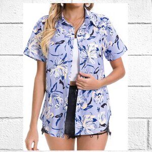 NWT! Womens Short Sleeve Floral Hawaiian Print Button-Down Shirt Top Blouse