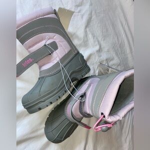 NWT Totes Sz-2 GS Kids Pink/Gray Warm Winter Snow Boots-Great Tread, Easy On/Off