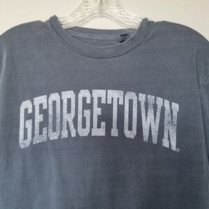 Stylish crop top with Georgetown print. Soft fabric. Perfect for casual wear.