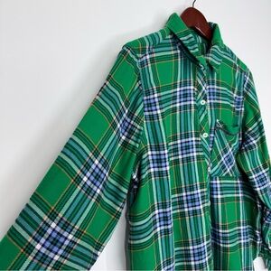 Aerie Green Plaid Button Down Pajama Loungewear Long Sleeve Shirt Size Large
