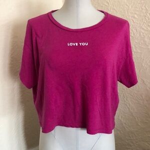 Victoria’s Secret Pink Purple White Love You Cropped Tee Shirt T-Shirt Top M