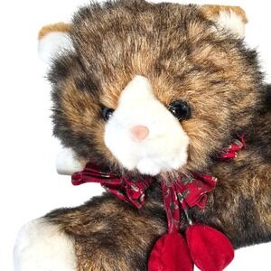Cherish this charming Nick & Noel collectible plush cat, a delightful creation from 1992. Its soft, tortoiseshell fur invites gentle hugs, while the festive red bow adorned with charming red ball ornaments adds a touch of whimsical holiday spirit. The plush cat's endearing face and fluffy white paws are sure to bring a smile. Perfect for a collector's shelf, as a sweet nursery accent, or a unique holiday decoration.