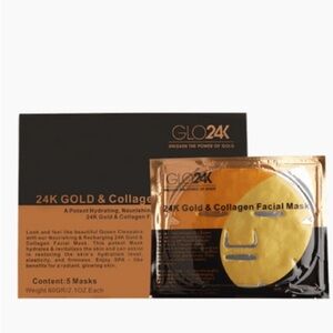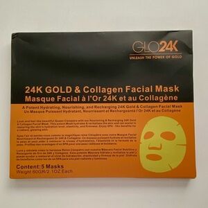 Experience the epitome of luxury with Glo24k’s Gold and Collagen Sheet Mask. This opulent 5-pack set is infused with genuine 24k gold renowned for its anti-aging properties and the ability to bring a radiant glow to the skin. When combined with the collagen, the mask penetrates deeply rejuvenating and nourishing the skin at its core. Each sheet mask envelopes the skin in a rich hydrating serum ensuring optimal absorption for maximum benefits, restoring the skin’s hydration level elasticity, and firmness.