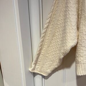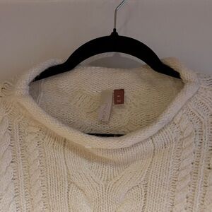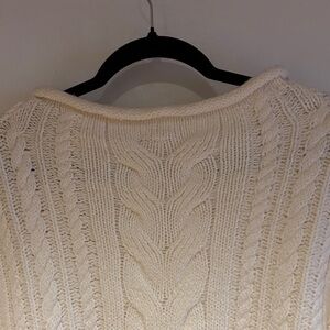 Elegant cable knit design. Soft and warm. Ideal for layering.