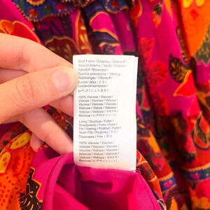 Farm Rio Colorful Pink Floral Tropical V Neck Tiered Long Sleeve Mini Dress XS